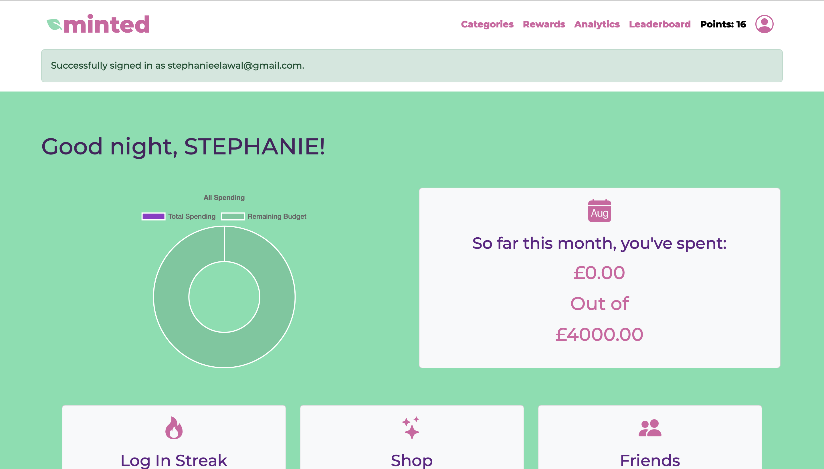 A fun group project in which we were tasked with creating a personal spending tracker. I was responsible for front and backend development of features such as the login and sign-in features with Google integration and Rewards system.